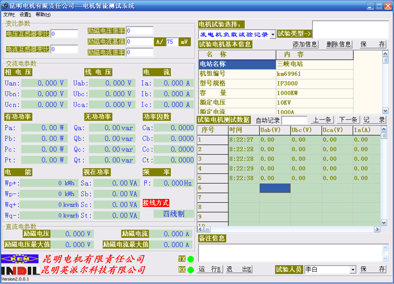 電機(jī)智能測(cè)試系統(tǒng)適用于與我公司生產(chǎn)的6000系列儀表通訊測(cè)試使用并生產(chǎn)固定格式的報(bào)表。用于記錄電機(jī)相電壓、線電壓、電流、有功功率、無功功率、功率因數(shù)、電能、視在功率、頻率等交流參數(shù)和勵(lì)磁電壓、勵(lì)磁電流、勵(lì)磁電壓最大值、勵(lì)磁電流最大值等直流參數(shù)。具有在線修改參數(shù)、全參數(shù)實(shí)時(shí)顯示功能、靈活的實(shí)驗(yàn)電機(jī)基本信息編輯功能、自動(dòng)記錄數(shù)據(jù)功能、串口通信、監(jiān)視各臺(tái)從機(jī)等特點(diǎn)。