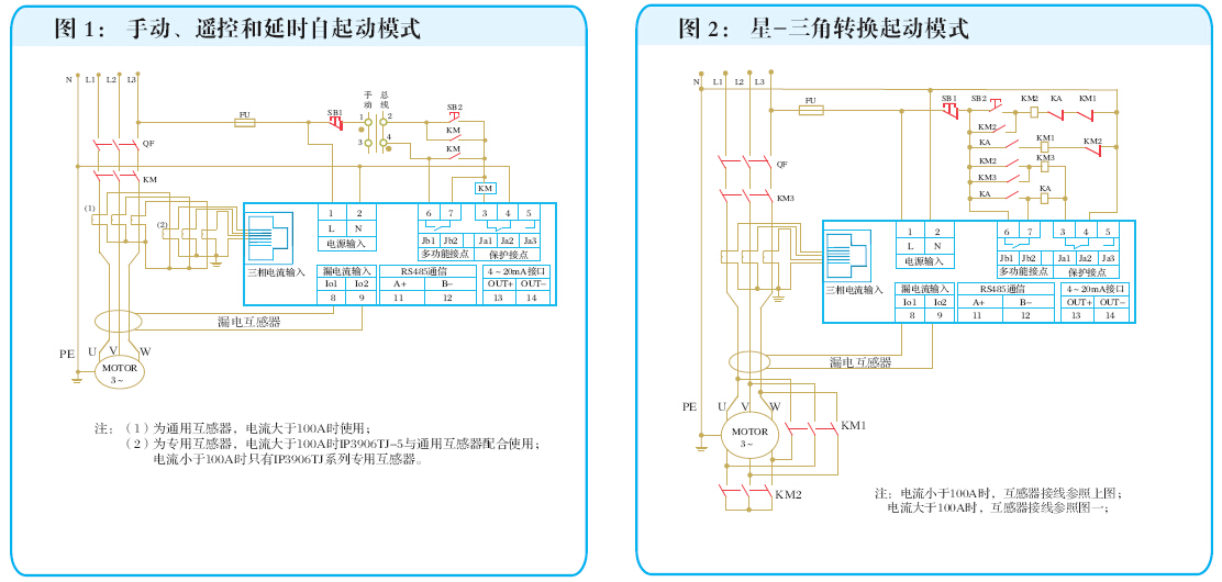 當(dāng)電機(jī)額定電流大于5A時,需外接專用或通用電流互感器。